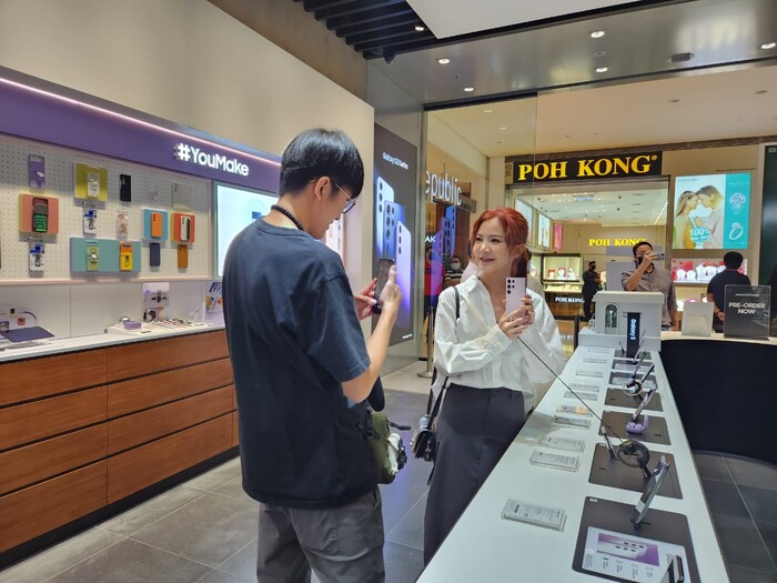 | ▲ 15일(현지시간) 말레이시아 쿠왈라룸푸르에 위치한 삼성 익스피리언스 스토어에서 현지 소비자들이 갤럭시 S23를 체험하고 있다. [사진=삼성전자 제공] |