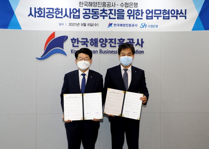 Sh수협은행이 한국해양진흥공사와 손잡고 해양부문 공동 사회공헌사업 추진에 나선다. 해양부문 정보를 공유하고 사회공헌 기금 조성 등 상호협력을 강화해 나갈 방침이다.