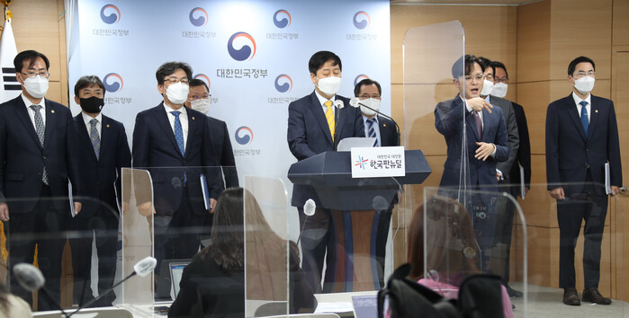 | ▲ 구윤철 국무조정실장이 13일 오전 정부서울청사에서 차관들이 모두 참석한 가운데 일본 정부가 후쿠시마 제1원전사고로 발생한 방사성 물질 오염수를 바다에 배출하기로 한 것과 관련해 긴급 관계차관회의를 마친 후 정부 대책을 발표하고 있다. [서울= 연합뉴스] |