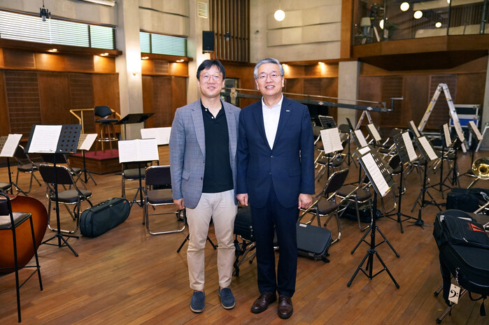 ▲ 김종호 기술보증기금 이사장(오른쪽)과 김동래 래몽래인 대표. [사진=기술보증기금] |