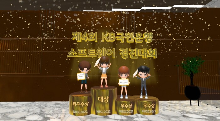 | ▲ KB국민은행(은행장 이재근)은 지난 12일 메타버스 공간에서 제4회 소프트웨어 경진대회 시상식을 개최했다. [사진=KB국민은행 제공] |