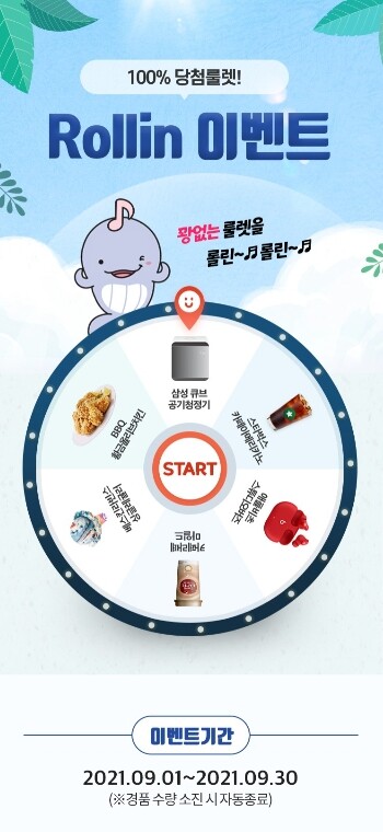 이벤트 참여 고객에게는 실시간 랜덤 룰렛 추첨결과에 따라 ▲삼성 큐브 공기청정기 ▲애플비츠 스튜디오 버즈 ▲BBQ치킨 모바일쿠폰 ▲스타벅스 모바일 커피쿠폰 등 푸짐한 경품을 증정한다.