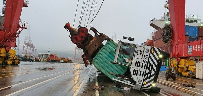 올해 7월 29일 감만부두에서는 안벽크레인의 스프레더 연결 줄이 풀리는 바람에 컨테이너가 아래에 있던 야드트랙터 위로 떨어져 운전기사가 다쳤다.