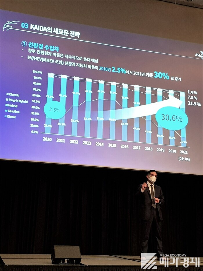 임한규 수입차협회 부회장은 “노르웨이와 네덜란드에서 내연기관차 신차를 보지 못하게 될 날은 불과 4년도 채 남지 않았다”며 “국내에서도 서울시가 ‘뉴딜정책’을 통해 오는 2035년부터 내연기관 차량 운행을 금지하는 등 자동차 패러다임의 변화를 반영한 정책을 내놨다”고 강조했다.
