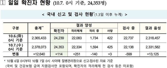 이로써 총 누적 확진자 수는 2만4353명이다.