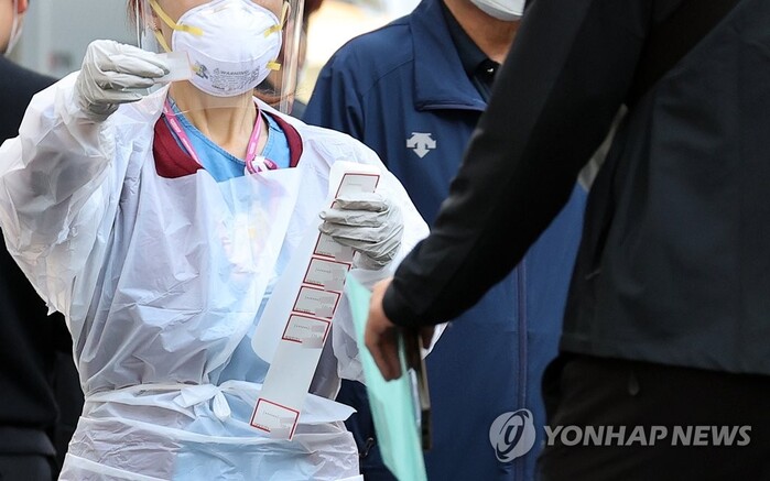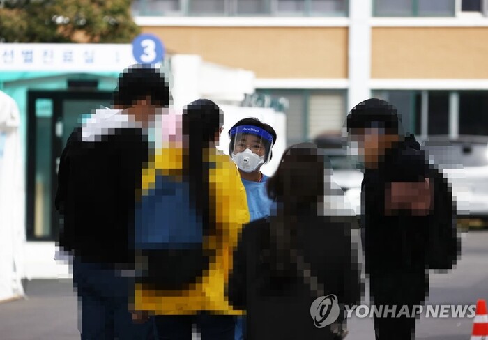 ▲ 서울 중구 국립중앙의료원 코로나19 선별진료소에서 관계자가 검체 채취 신청자의 이름이 적힌 스티커를 들고 대기자들을 향해 가고 있다. [사진= 연합뉴스] |