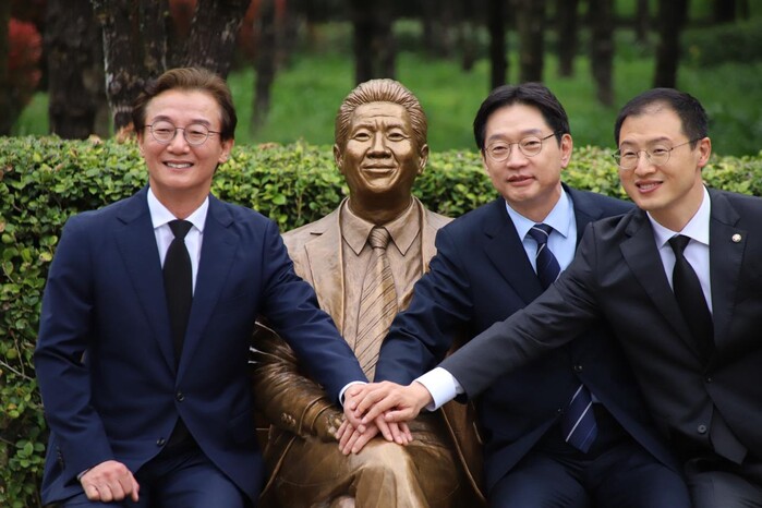 | ▲ 왼쪽부터 전재수 부산시장 후보, 김경수 경남도지사 후보, 김상욱 울산시장 후보. [사진=전재수 선거캠프 제공] |