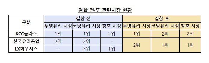 또 "조건부 승인 조치를 함으로써 건축용 코팅유리 시장에서 발생할 수 있는 경쟁제한 가능성은 차단하면서도, 기존 1위 사업자인 KCC글라스와 동일한 사업구조를 이뤄 대등하게 경쟁할 수 있는 여건이 형성되도록 했다"고 설명했다.
