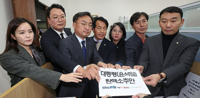 [메가경제=이동훈 기자] 더불어민주당과 조국혁신당, 개혁신당, 진보당, 기본소득당, 사회민주당 등 야당들이 윤석열 대통령에 대한 탄핵소추안을 4일 국회에 제출했다.