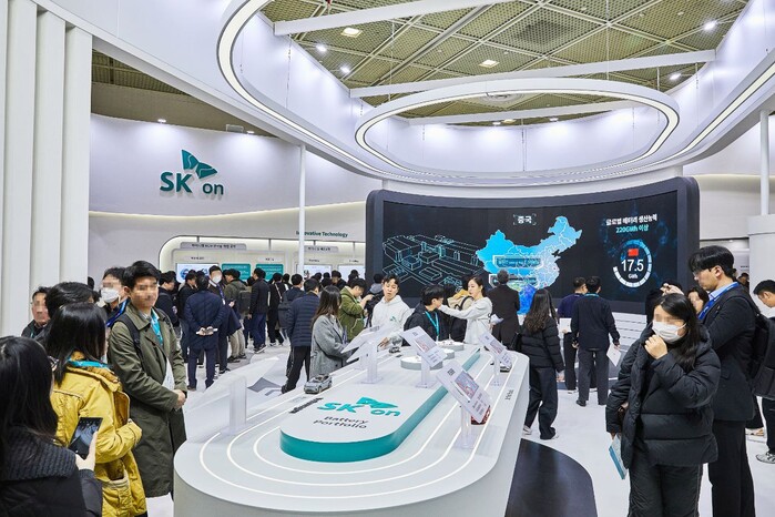 SK온의 전시장은 미니 트랙 위에 자동차 미니어처들을 전시한 런웨이가 입구에서부터 관람객들의 발길을 붙잡았다. 현대차 아이오닉5, 제네시스 eGV70를 비롯해 포드 F-150 라이트닝, 페라리 SF90, 벤츠 EQA, EQB 등 SK온 배터리가 탑재된 미니어처 차량들이 포진한 곳이다. 관람객들은 각 자동차에 탑재된 배터리들의 제원을 일일이 메모하거나 촬영했으며, 일부 관람객들은 각 배터리들의 차이점을 전시관계자들에게 묻기도 했다.