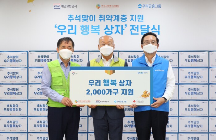 우리은행 전국 영업본부 및 예금보험공사 소속 임직원들은 추석 전에 총 2000여 개의 ‘우리행복상자’를 한국사회복지관협회 산하 전국 종합사회복지관에 전달할 예정이다.