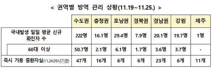 ▲ 권역별 방역 관리 현황. [출처= 중앙재난안전대책본부] |