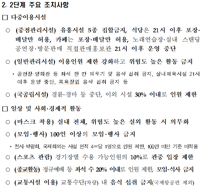 ▲ 2단계 주요 조치사항. [출처= 중앙재난안전대책본부] |