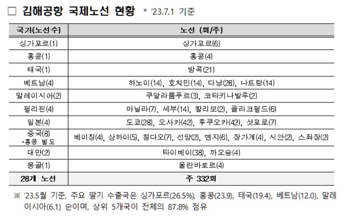 민ㆍ관 협의체 참여기관은 국토부, 지자체(경남, 부산), 한국공항공사, 항공사, 지역 수출업체 등이다.