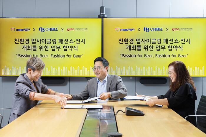 [메가경제=김형규 기자] 오비맥주가 서울패션허브 배움뜰, 한국패션디자인학회와 '친환경 업사이클링 패션쇼·전시' 개최를 위한 업무협약을 체결했다고 24일 밝혔다.