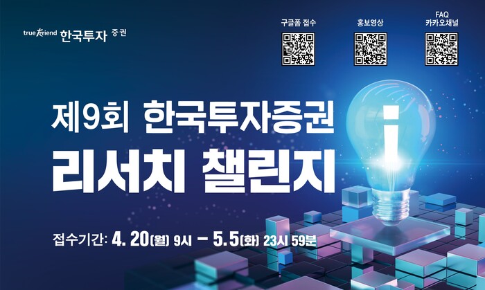 한국투자증권 관계자는 “리서치 챌린지는 시장과 산업, 기업에 대한 분석 역량을 갖춘 인재를 발굴하기 위한 프로그램”이라면서, “참가자들이 실력을 검증하고 현업을 경험할 수 있는 기회가 될 것”이라고 말했다.