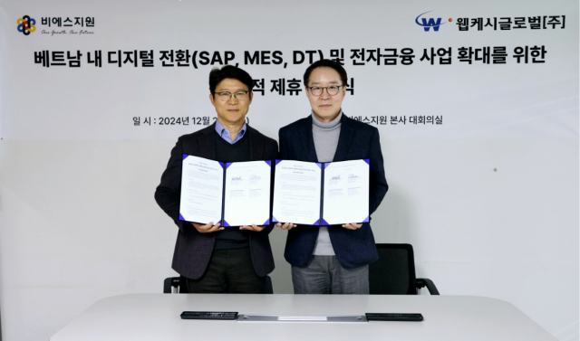 이번 협약으로 양사는 웹케시글로벌의 자금 관리 솔루션 ‘WeCMS’와 비에스지원의 글로벌 ERP 솔루션 ‘SAP ERP’를 연계해 제조·운영 및 자금 데이터를 통합하고, 실시간 데이터를 기반으로 효율적인 의사결정을 지원할 예정이다. 이를 통해 데이터 중복 입력 방지 등 디지털 프로세스 혁신과 비용 절감을 실현해 베트남 기업들의 경쟁력을 강화해 간다는 방침이다.