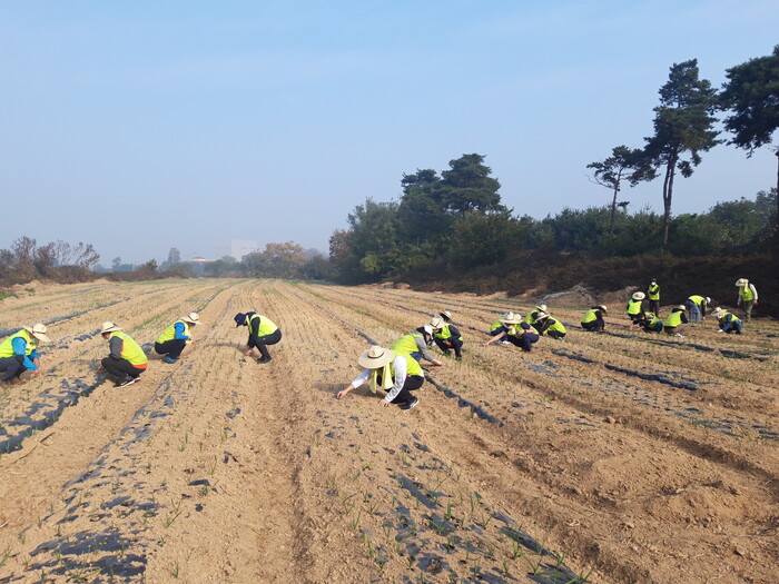 이날 일손돕기에 참여한 직원들은 주민들과 함께 마늘대 세우기 작업, 가을 농산물수확 및 마을 주변 환경정화활동 등을 실시하며 구슬땀을 흘렸고, 마을에 필요한 생필품도 전달해 행사의 의미를 더했다.