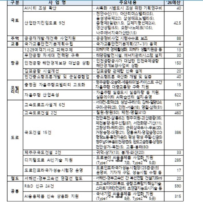 | ▲ 국토교통부'26년 주요 신규사업 |