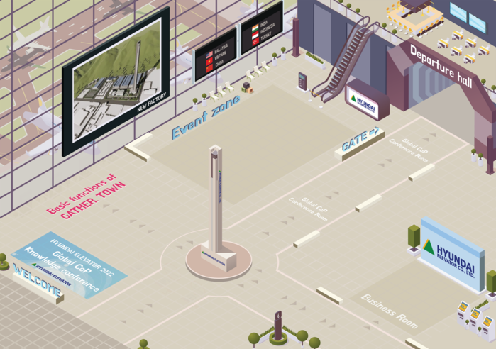 현대엘리베이터는 메타버스 플랫폼 '게더타운'에서 사내 자율학습 조직인 글로벌 CoP(Community of Practice)의 연구 활동을 국내외 임직원과 공유하는 지식 콘퍼런스를 열었다고 17일 밝혔다.