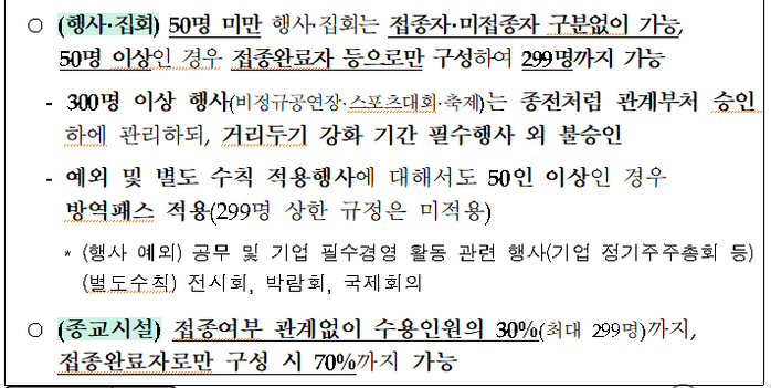 ▲ 행사·집회, 종교시설 거리두기 주요내용. [보건복지부 제공] |