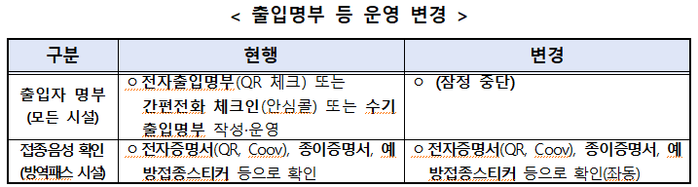 ▲ 출입명부 등 운영 변경. [보건복지부 제공] |
