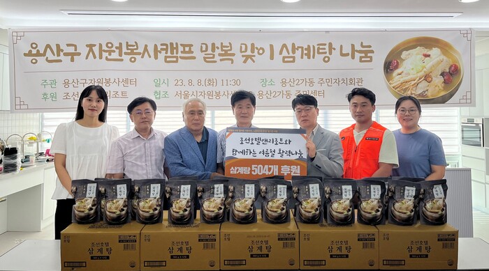 ▲조선호텔앤리조트가 취약계충 대상 여름철 활력 나눔 활동을 진행했다[사진=조선호텔앤리조트] |