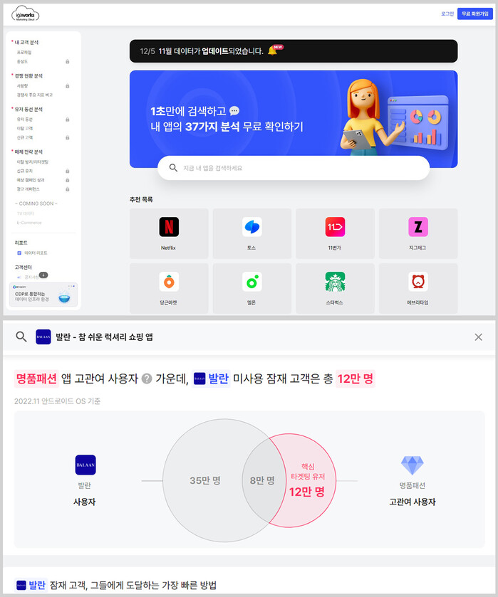 아이지에이웍스는 마케팅클라우드 서비스를 더 고도화시켜 내년 1월 국내 최대 규모의 이커머스 거래 데이터를 기반으로 하는 신규 분석 지표들을 선보일 계획이다.