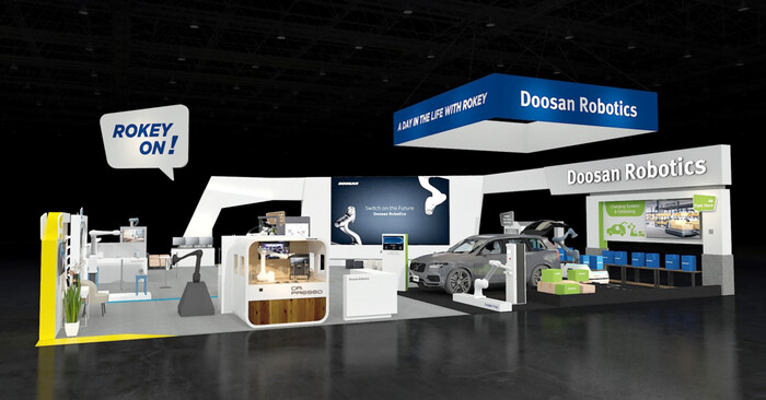 두산로보틱스는 이번 행사에서 '협동 로봇 로키(ROKEY)와 함께 하는 당신의 하루'를 주요 전시 테마로 선정했다.