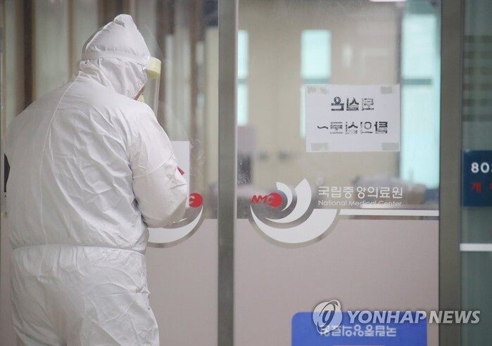 ▲ 방호복을 입은 의료진이 17일 서울 국립중앙의료원격리병상에 들어서고 있다. [사진= 연합뉴스] |