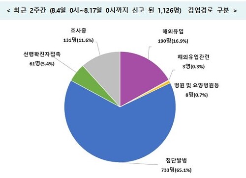 ▲ 최근 2주간 코로나19 감염경로 구분. [출처= 중앙방역대책본부] |