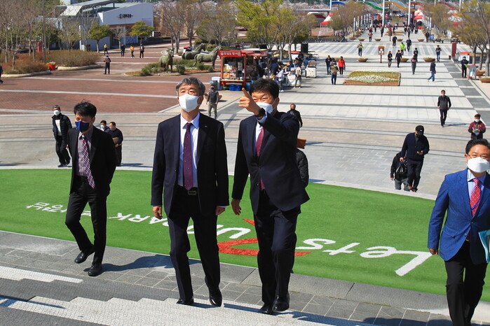 | ▲ 지난 3일 정기환 마사회 회장이 부산경남경마공원을 방문해 현장점검 중인 모습 [사진=한국마사회 제공] |