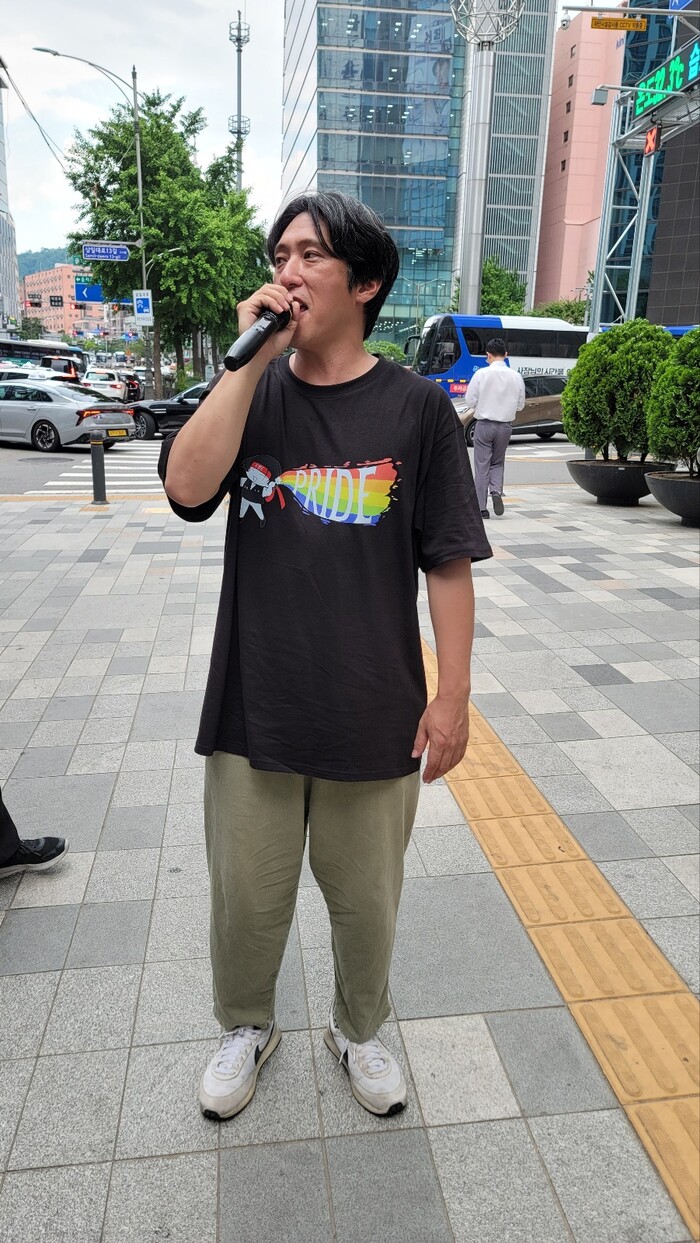 | ▲ 정주원 이랜드노조사무국장이 발언하고 있다. [사진=심영범 기자] |