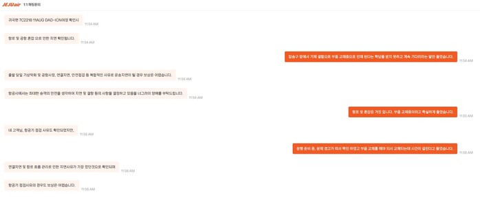 문제는 사후 보상 과정에서 불거졌다. 제주항공은 해당 승객이 지연 보상을 요구하자 "기체결함이 아닌 연결지연 및 항로흐름 관리, 점검으로 인한 지연"이라며 보상 의무가 없다”고 통보한 것으로 알려졌다.