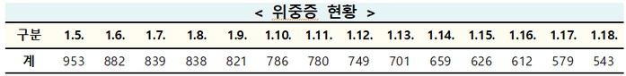 ▲ 18일 0시 기준 코로나19 위중증 현황. [중앙방역대책본부 제공] |
