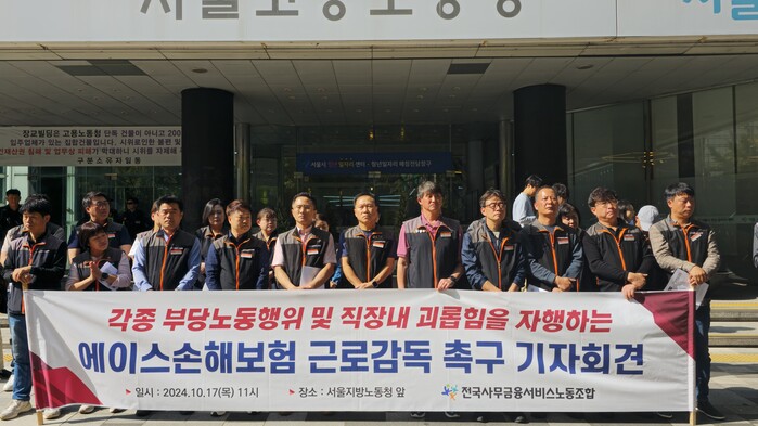 22일 관련업계와 메가경제 취재결과에 따르면, 에이스손보 노조는 지난 17일 서울지방노동청 앞에서 사측이 각종 부당노동행위와 노조를 탄압하고 있다며 기자회견을 열었다.