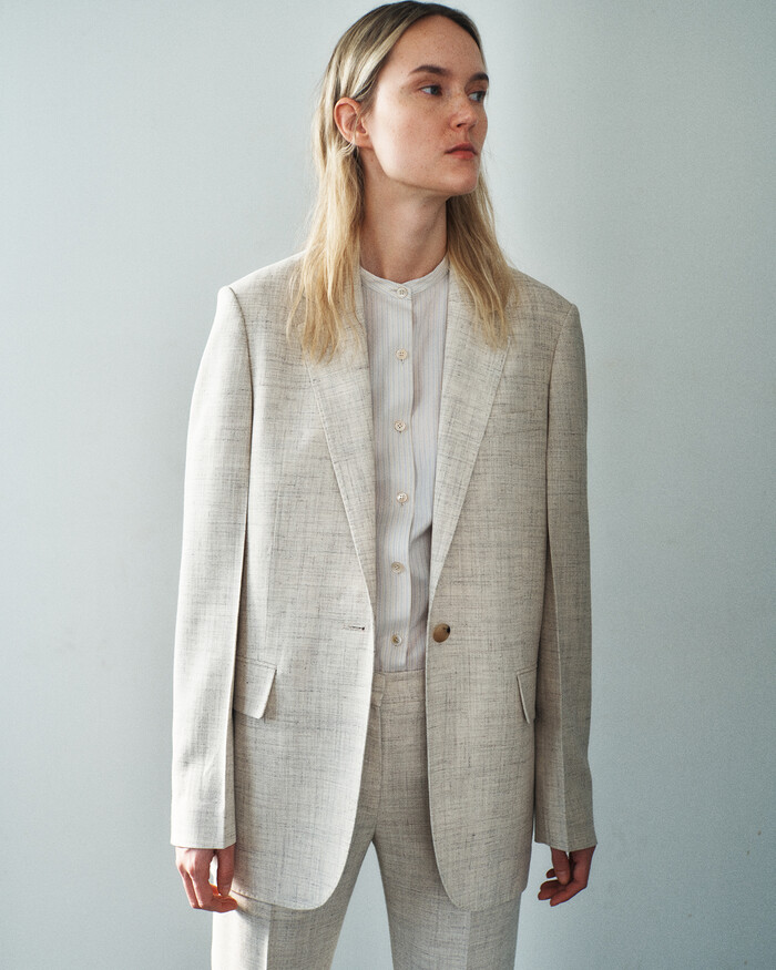 이번 컬렉션은 투톤 조직감의 오버사이즈 재킷과 슬림 핏 팬츠, 볼륨감 있는 점퍼와 H라인 스커트 등 다양한 셋업 아이템으로 구성됐다. 이와 함께 클래식 셔츠를 재해석한 원피스와 스트라이프 셔츠 등도 선보인다.