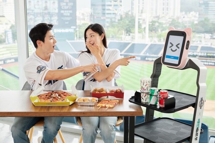 [메가경제=정진성 기자] 야구장에서도 서빙로봇이 서빙하는 음식을 관중석에서 배달 받을 수 있는 시대가 열렸다.