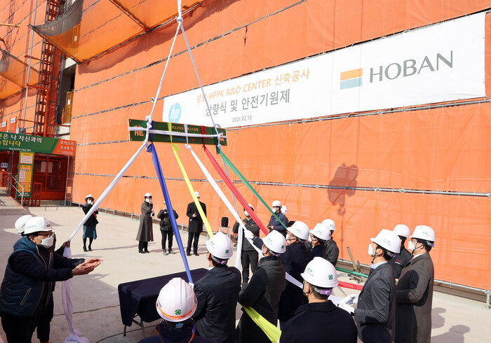 | ▲ ‘HP 프린팅 코리아 R&D센터’ 상량식 [사진=호반건설 제공] |
