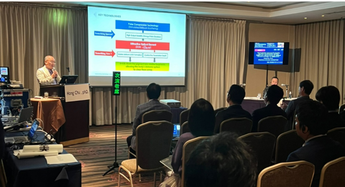 ▲레이저옵텍이 일본미용피부과학회에서 단독 심포지엄을 개최했다[사진=에이저옵텍] |