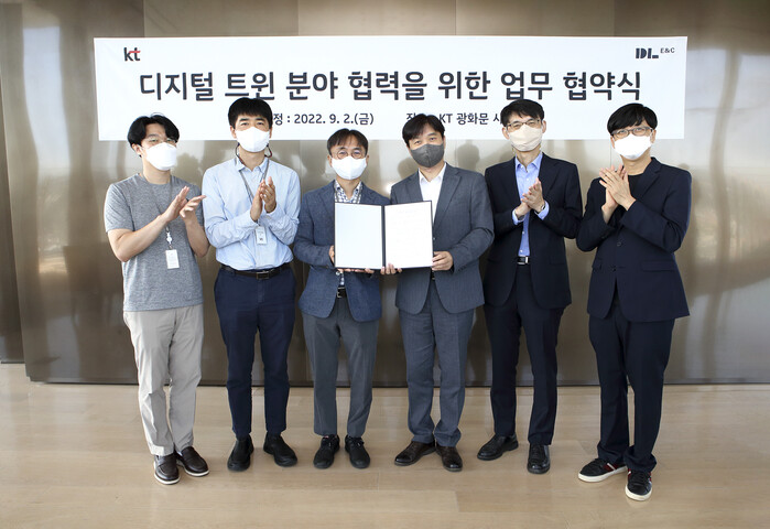 KT는 DL이앤씨와 '디지털 트윈(Digital Twin)'의 대중화와 건설 현장 생산성 향상을 위한 업무협약(MOU)을 체결했다고 2일 밝혔다.