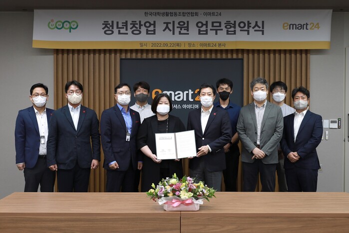 이마트24는 지난 22일 서울 성동구에 있는 이마트24 본사에서 한국대학생활협동조합연합회와 ‘편의점 청년창업 지원을 위한 업무협약(MOU)’을 맺었다고 23일 밝혔다.