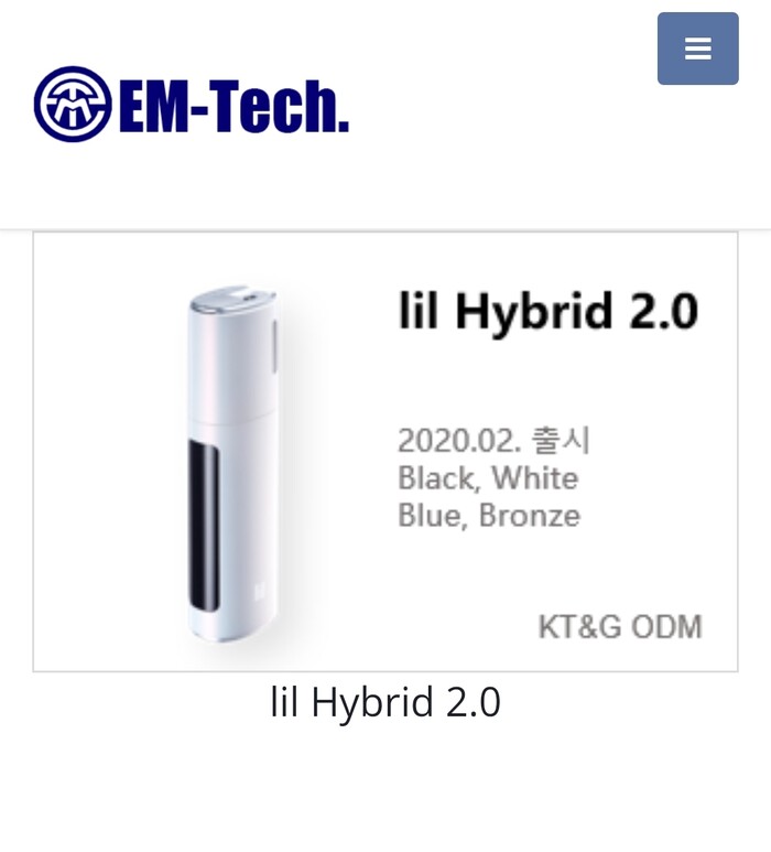 ▲ 자사 생산품으로 KT&G의 릴를 소개하고 있는 이엠텍 홈페이지 [이미지=이엠텍]