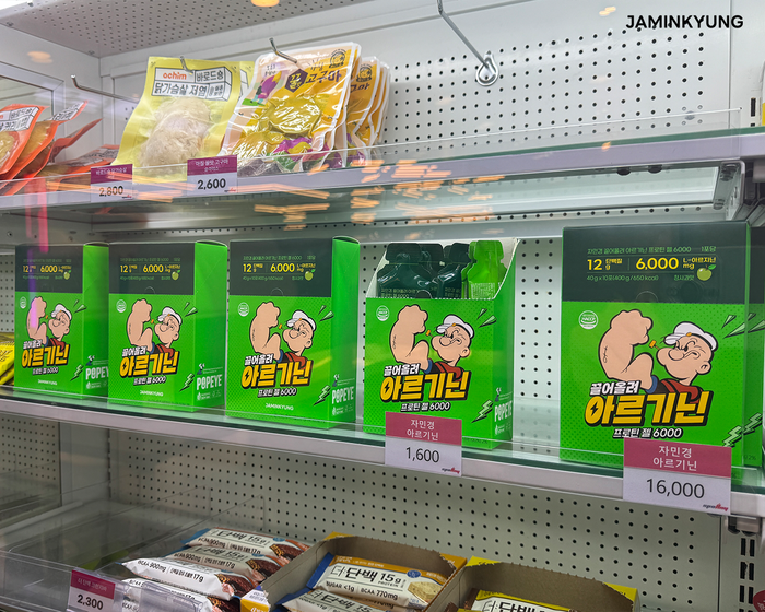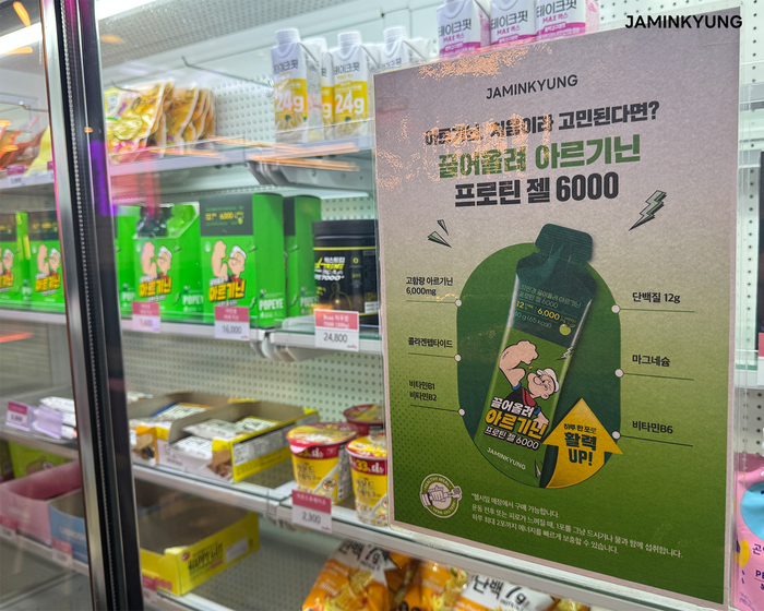 ‘끌어올려 아르기닌 프로틴젤 6000’은 국민 캐릭터 뽀빠이(POPEYE)와의 정식 콜라보로 탄생한 기능성 에너지젤로, 아르기닌 6,000mg과 단백질을 젤 형태로 간편하게 섭취할 수 있어 운동 전후 활력 충전에 특화된 제품이다. 아르기닌 특유의 비린맛을 최소화한 상큼한 맛과 휴대성으로 헬스 보충제가 부담스러운 소비자들에게 좋은 반응을 얻고 있다.