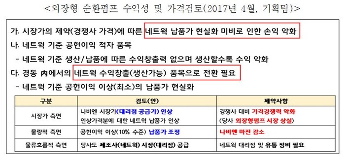 기업집단 내부에서도 생산할수록 경동원의 손익이 나빠지는 문제가 지적돼 납품가 현실화의 필요성도 제기됐지만 실제로는 반영되지 않은 것으로 조사됐다.