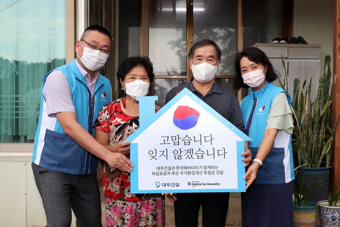 대우건설은 올해 광복 76주년을 맞아 처음으로 참여했으며, 내년 2월까지 독립유공자 후손 6세대의 주택을 개보수할 예정이다. 이번 활동을 위해 지난 10일 한국 해비타트에 기부금 2억 원도 전달했다.