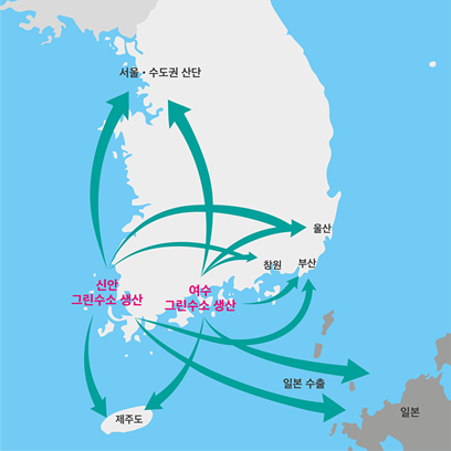 그린수소의 저장과 활용을 위해 연산 1만 톤 규모의 액화수소 플랜트 2곳을 세우고, 액화수소 충전소도 전남 주요 지역 9곳에 설치하기로 했다.
