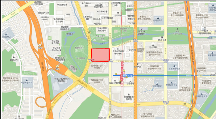 | ▲ 엔씨소프트 컨소시엄이 성남시로부터 사들인 분당구 삼평동 641번지 부지 [성남시 제공] |
