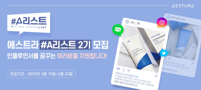 [메가경제=김형규 기자] 아모레퍼시픽의 에스트라(AESTURA)가 인플루언서 꿈나무 지원 프로그램 ‘A리스트’의 2기 참가자를 모집한다고 13일 밝혔다.