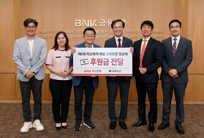 [메가경제=오민아 기자] BNK부산은행(은행장 방성빈)은 22일 부산은행 본점에서 초록우산어린이재단 부산지역본부와 학교폭력 예방을 위한 ‘제6회 학교폭력 예방 스마트폰 영상제’ 후원금 전달식을 가졌다고 밝혔다.